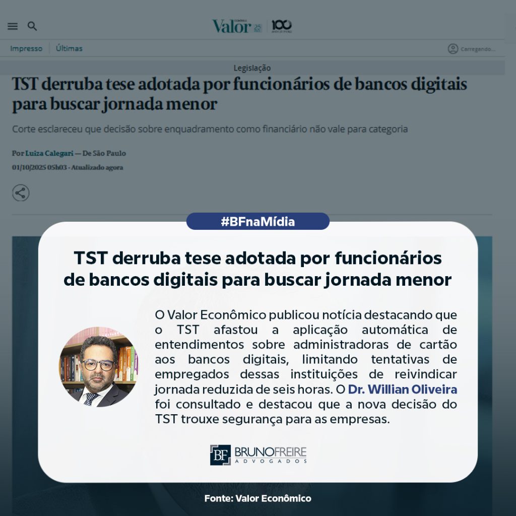 Fonte: https://valor.globo.com/legislacao/noticia/2025/10/01/tst-derruba-tese-adotada-por-funcionarios-de-bancos-digitais-para-buscar-jornada-menor.ghtml